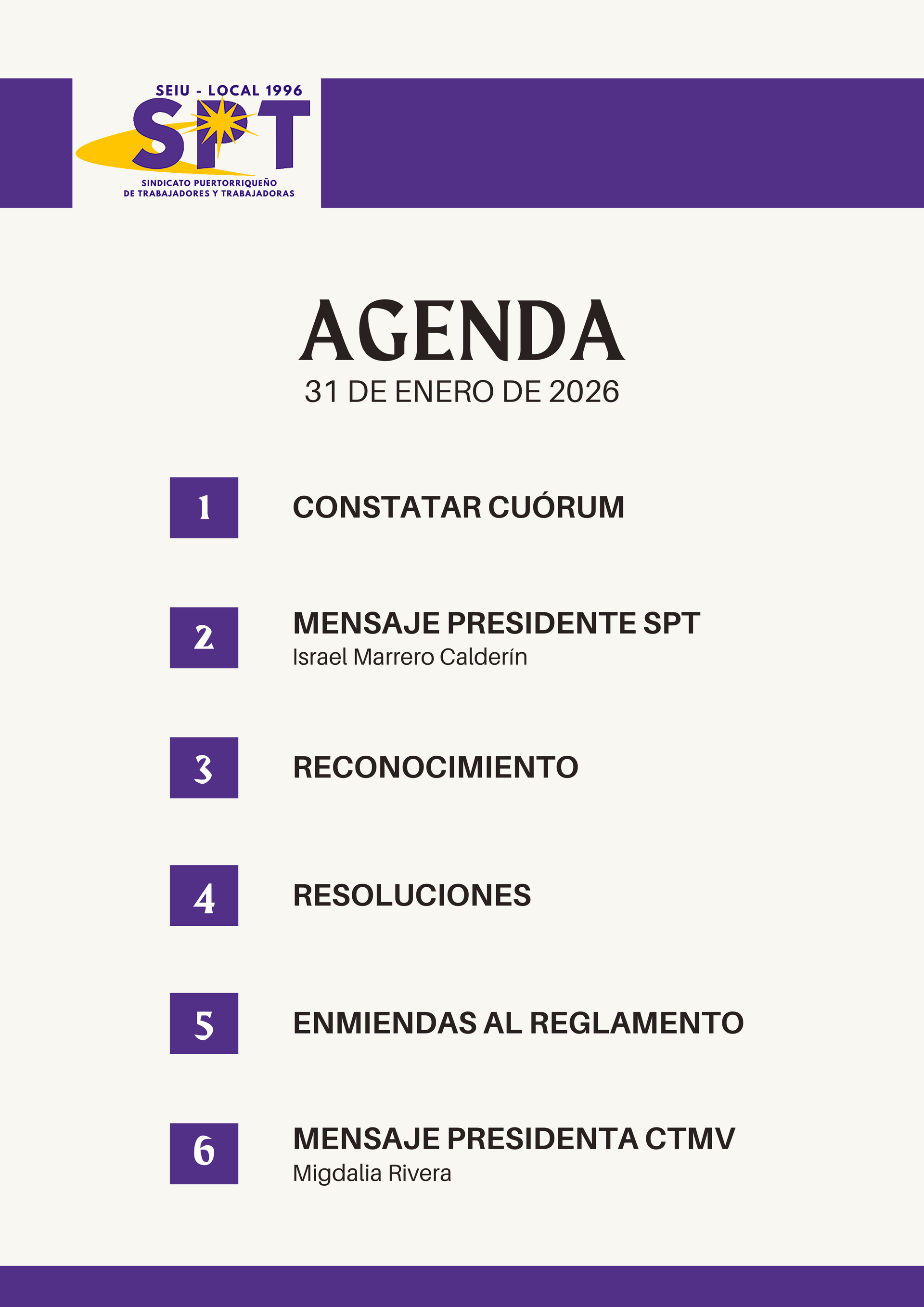 EXHORTAMOS a toda nuestra membresía a mantenerse firmes en la defensa de estos principios y a participar de manera activa y solidaria en las iniciativas del Sindicato Puertorriqueño de Trabajadores y